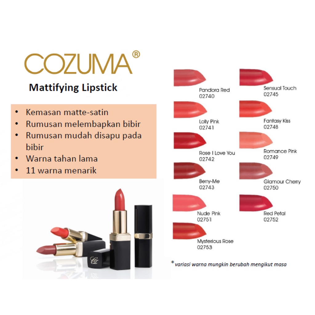 Oleh itu COZUMA Mattifying Lipstick merupakan salah satu product kecantikan yang dikeluarkan oleh Hai-O Marketing yang dirumus oleh bahan semulajadi dan bahan-bahan yang. For lipstick and cc cream pula memang from Cozuma.
