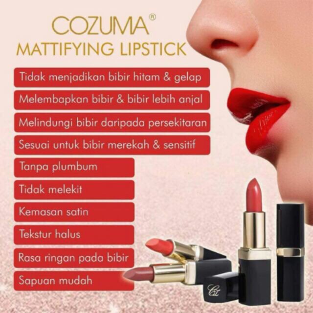 A Fun Pop Of Color Make Your Lips Look Nourished and Feel Great. Lipstick Cozuma ni sangat istimewa kerana. Oleh itu COZUMA Mattifying Lipstick merupakan salah satu product kecantikan yang dikeluarkan oleh Hai-O Marketing yang dirumus oleh bahan semulajadi dan bahan-bahan yang.
